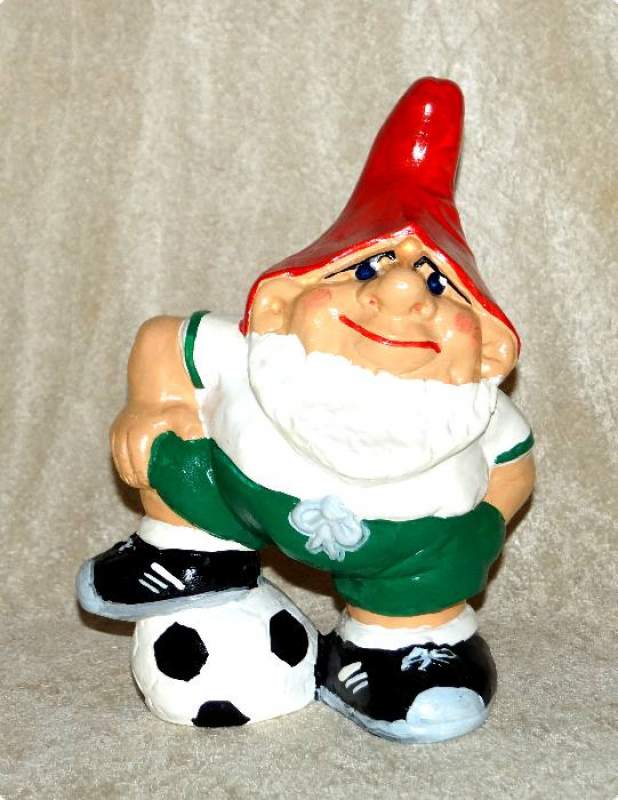 Der Gartenzwerg als Fußballspieler wartet auf den Anpfiff.