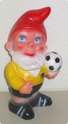 Der Gartenzwerg als Fußballspieler wartet auf den Anpfiff und freut sich auf das erste Tor, dass er schießt. Sport ist für die Gartenzwerge genauso schön wie die Arbeit im Garten.