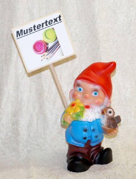 Gartenzwerg mit Vogel, Blumen und individuellem Schild - 4810030